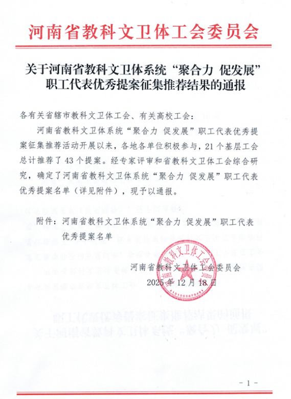 我校宋富凯老师提案获河南省教科文卫体系统“...